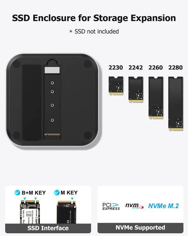 [Up to 8TB NVMe Storage Expansion] Enhance the storage of your Mac Mini M4/M4 Pro with M-Key and B+M Key NVMe SSDs up to 8TB. Achieve 10Gbps data transfer speedsideal for 4K video editing, large file backups, and demanding workflows. (SSD not included)
