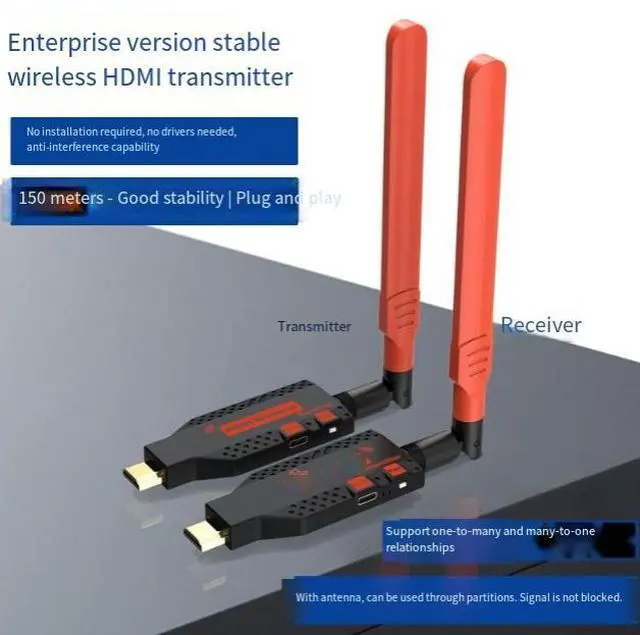 Extend your HDMI signal wirelessly over long distances with this Enterprise HDMI Wireless Extender. Featuring up to 150m outdoor range and stable 1080P@60Hz video transmission, this professional-grade system is perfect for large conference rooms, classrooms, auditoriums, and trade shows. With plug-and-play simplicity and interference-resistant wireless technology, it delivers reliable, high-quality video without the need for long HDMI cables.