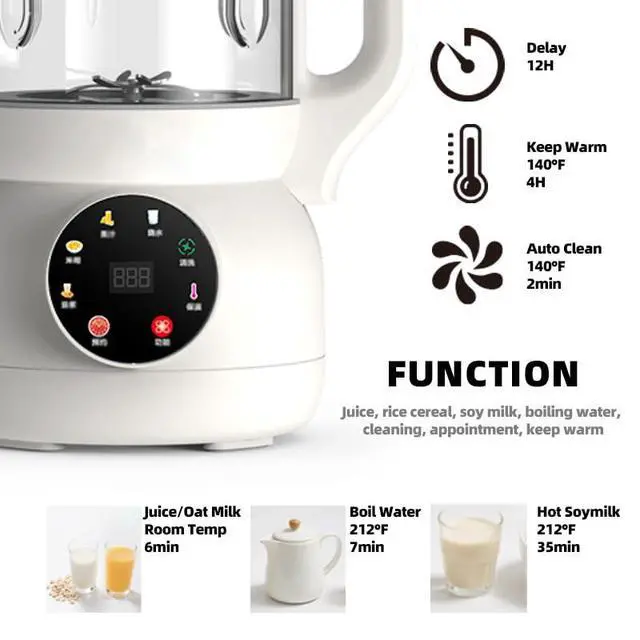 Easy & Convenient: You can skip the soaking step, which means less grunt work for you to make vegan milk. Nutmilk maker machine has various functions to meet your needs. Also, it has Boil Water, Keep Warm(Up to 6hrs), and Delay Start(Up to 12hrs) functions. Self Clean for a 60s rinse cycle and easy clean up!