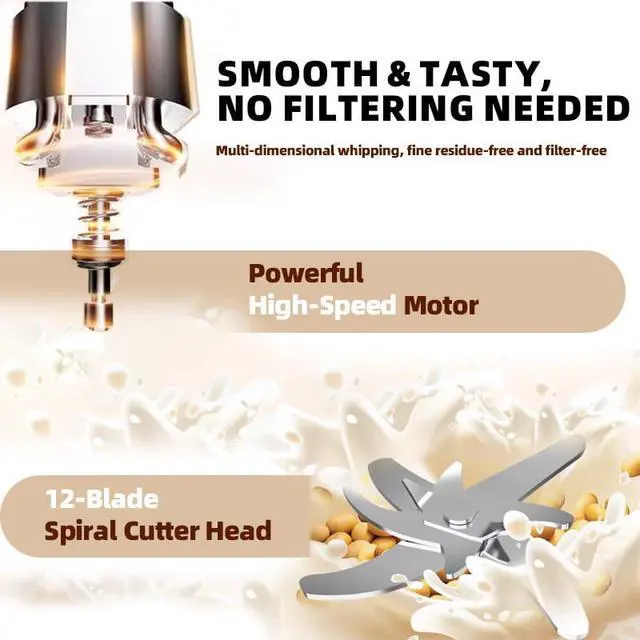Ultra-Smooth Blending Technology: The nut milk maker machine features a powerful motor and equipped with 12 durable stainless steel x-cross blades.Its quadruple blending column ensures full 360° blending, delivering perfectly smooth plant-based milk every time.