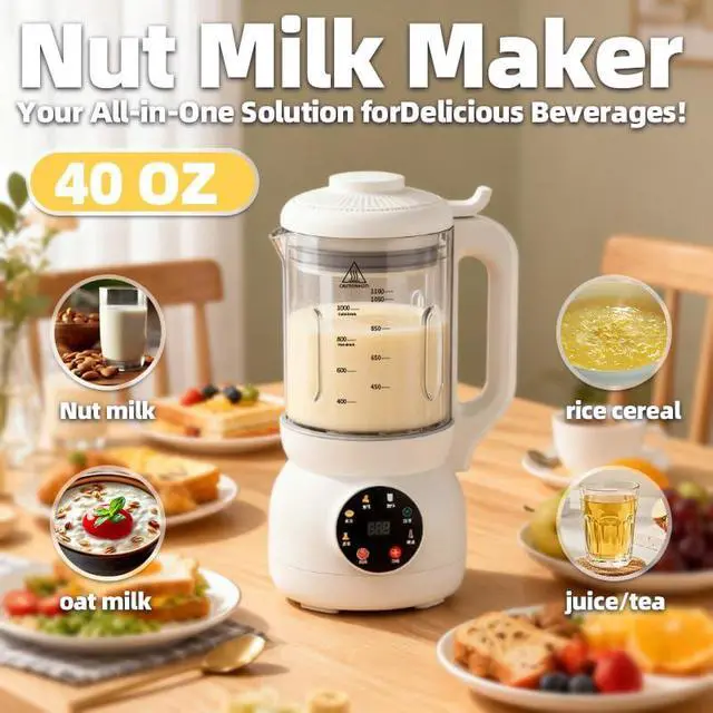7-in-1 Nut Milk Maker: With the touch of a button, you can make. Not only it can make lactose-free almond milk, oat milk, and soy milk, but also makes smoothies, hot & cold plant-based beverages. The 8-in-1 control panel makes it easy to create a variety of drinks, making it easy for beginners and professionals alike