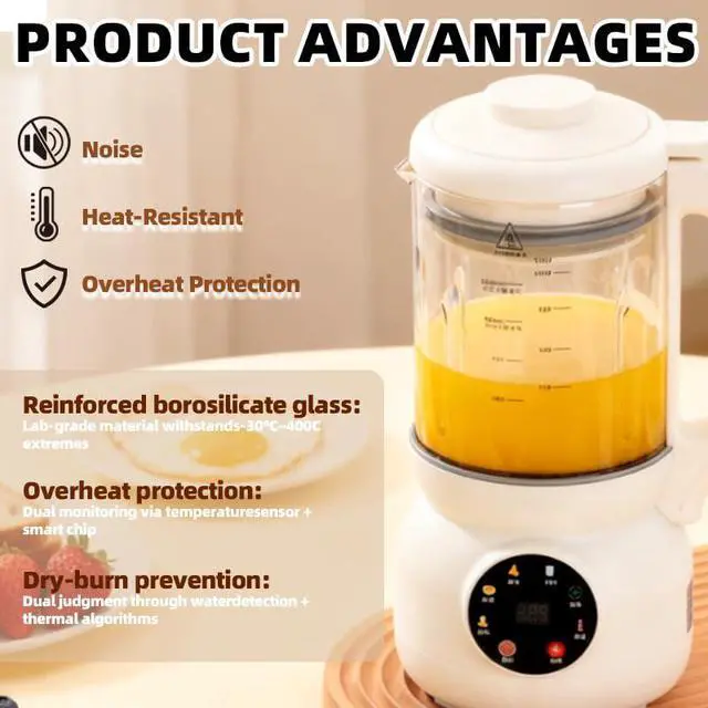 40oz Big Capacity & Low Noise: The soy milk maker has an large capacity of 40 oz and can make up to 4-5 cups of fresh plant milk at a time; This oat milk maker offers a low-noise soundproof design. Great for daily use, gatherings, or meal prep.