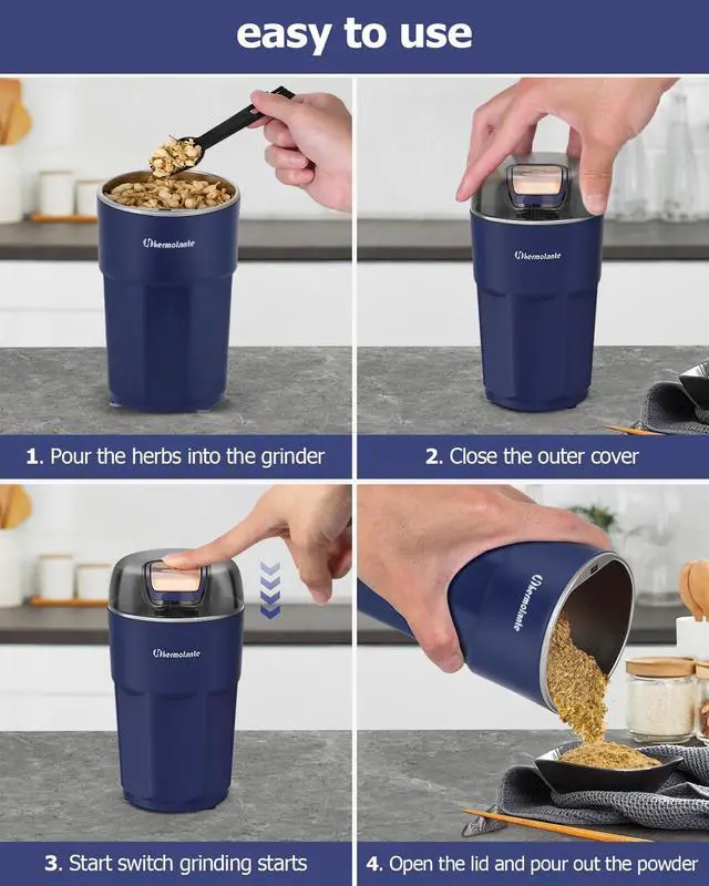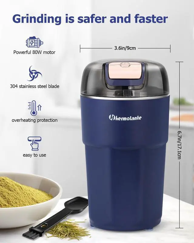 High quality 304 stainless steel blades provide powerful and fast performance,can crush spices and herbs with ease.