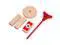Fill the press with crushed fruits, place wooden plate, cross bar and plastic ring in sequence.