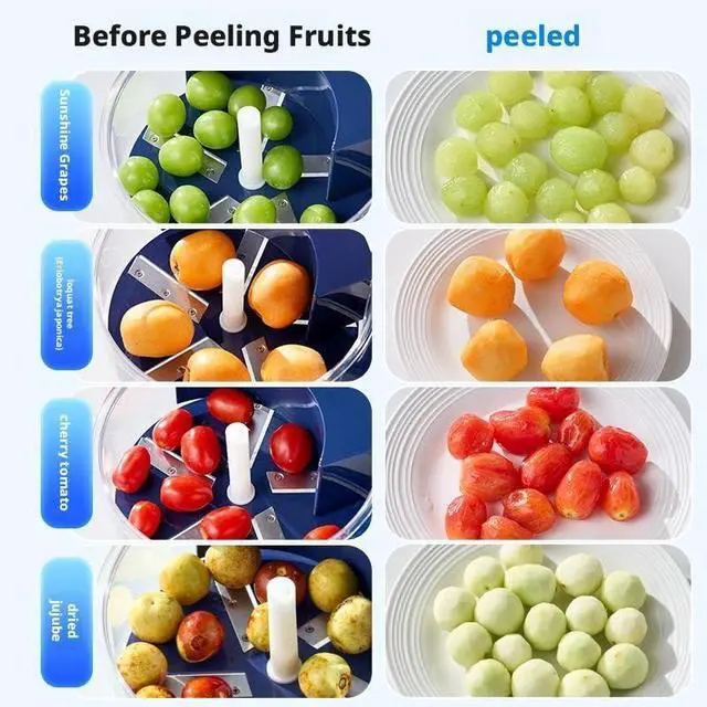 - Efficient Peeling: Powered by a robust 50W brushless motor and stainless steel blades, this machine peels garlic, grapes, and cherry tomatoes in as little as 20 seconds, saving valuable preparation time.