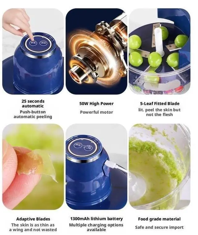 - Rechargeable & Portable: Cordless and USB-rechargeable, this lightweight, compact peeler is ideal for kitchens, catering events, or even outdoor use.