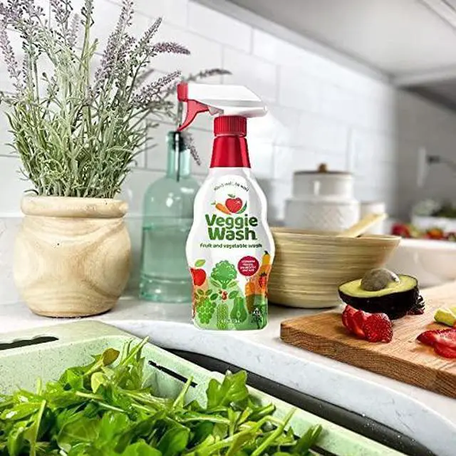 Veggie Wash quickly and easily removes stubborn wax that lock in dirt, containments, and people-handling residue, leaving behind sparkling clean fruit & veggies!