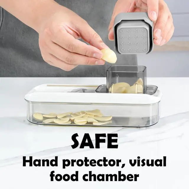 Provides handguard which you can put small veggies in it and protect your hand while using. Press the hand guard to snap it into the panel.