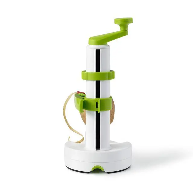 Peeling potatoes is quick and easy with Rotato. It peels just the skin without wasting any of the nutritious part of the vegetable. The Rotato peeler is simple and safe to operate. Its non-slip base holds securely to the counter or other work surfaces. Rotato comes with a little plastic knife, stored conveniently under the base. It’s specially designed for easy removal of potato eyes or other blemishes. It makes peeling all kinds of fruits and vegetables easy and effortless. Rotato...the go-to kitchen tool for effortless peeling!