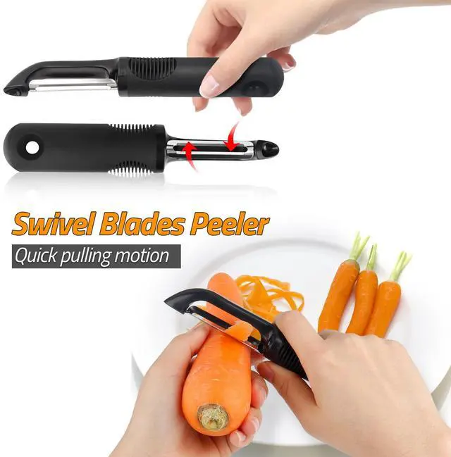 Swiveling twin bladesvegetable peeler is constructed with twin blades that slide back and forth easily on fruits and vegetables. The double-edged blade of the peeler is perfect for both left and right-handed individuals.