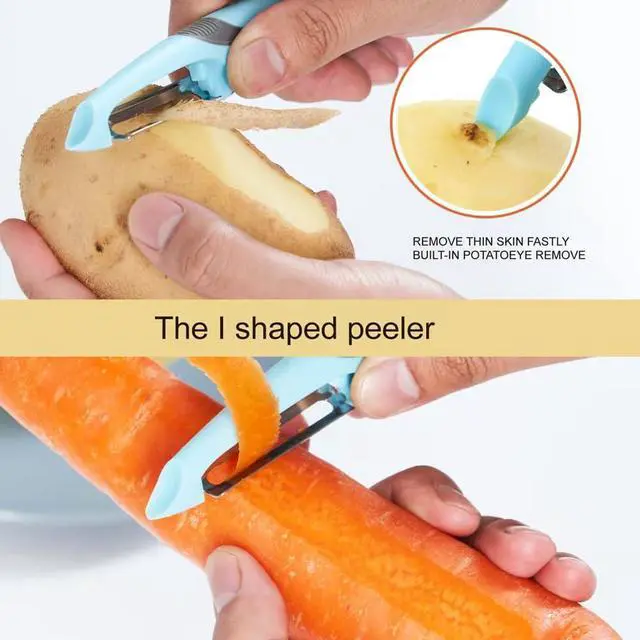 Potato Peelers for Eye Remover: The I-shaped peeler has a special tool to remove potato eyes and bad spots. It gets rid of them in the smallest area possible, so you don't waste any of your veggies.