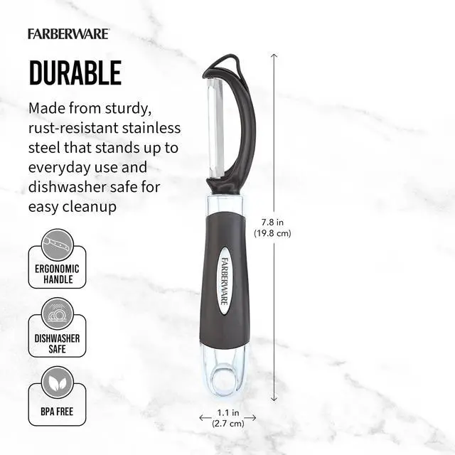 HIGHLY DURABLE CONSTRUCTION: The rust-resistant stainless steel blade and sturdy handle are built to stand up to daily use; this peeler is also dishwasher safe, making cleanup fast and effortless after every use