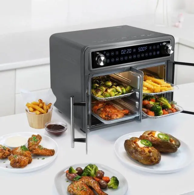 • 10 Presets: Air Fry, Bake, Broil, Toast, Roast, Reheat, Pizza, Fries, Chicken Wings, Steak, and Veggies.