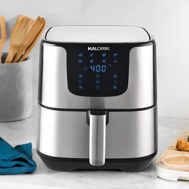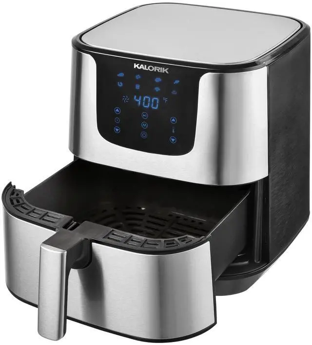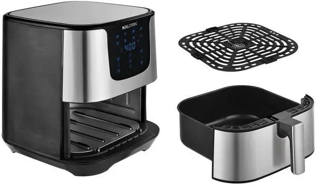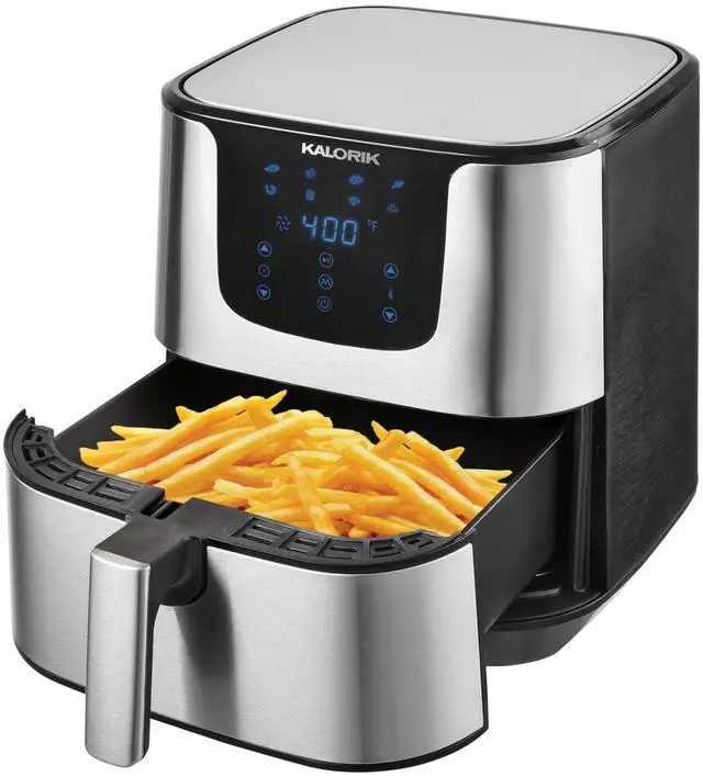 Discover the multi functional appliance that can fry, grill, bake, toast, and roast all your favorite foods and prepare healthy, family-style meals in a matter of minutes. The Kalorik 6 Quart air fryer pro XL uses special rapid hot air technology to cook food faster, while reducing fat and calories. Enjoy the crispy, crunchy exterior and tender, flavorful interior of deep-fried food, with little to no oil. Make perfectly-cooked French fries, onion rings, steaks, vegetables, and even baked goods like cakes and desserts.