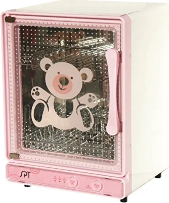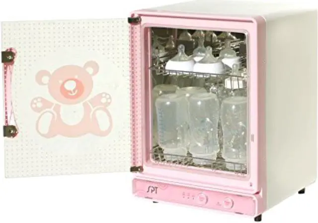 A must-have baby item, dries and sanitizes up to 9 baby bottles in as little as 15 minutes. Stainless steel interior and racks safe and easy to use. Convenient dual-rack design, lower rack holds up to 9 standard bottles and upper rack for small items. Utilizes hot air to sanitize and dry. High efficiency heating plate distributes heat evenly and maintains sanitation.