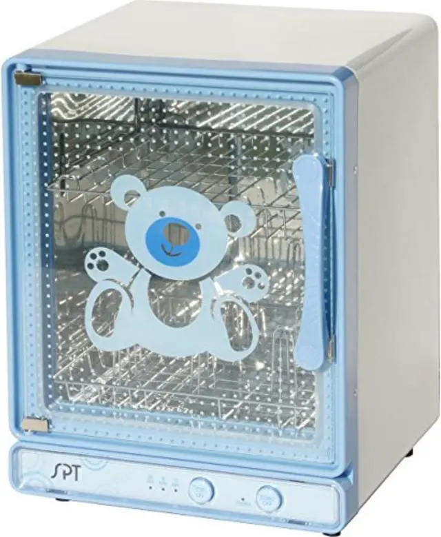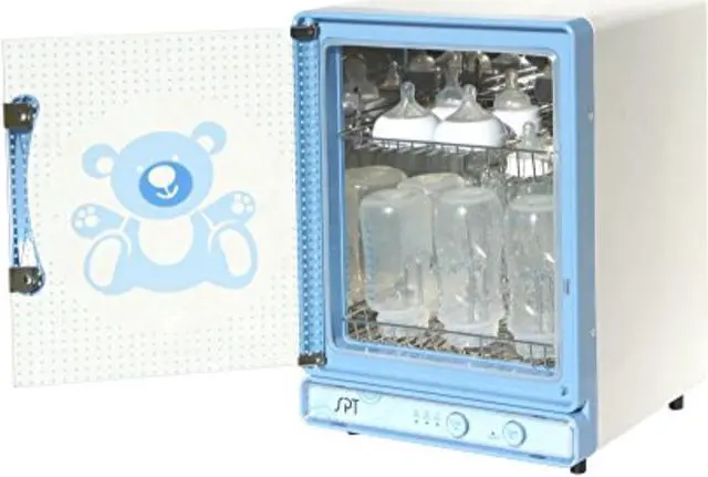 A must-have baby item, dries and sanitizes up to 9 baby bottles in as little as 15 minutes. Stainless steel interior and racks safe and easy to use. Convenient dual-rack design, lower rack holds up to 9 standard bottles and upper rack for small items. Utilizes hot air to sanitize and dry. High efficiency heating plate distributes heat evenly and maintains sanitation.