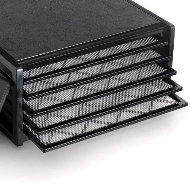 The Excalibur D500 dehydrator is one of the latest creations of Excalibur designed to add value and style to your kitchen. The model D500 is a high-quality dehydrator which helps you to remove moisture from the food and maintains an adequate level of heat and air-flow to make the process all the more smooth and successful.