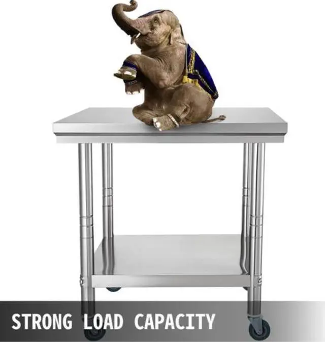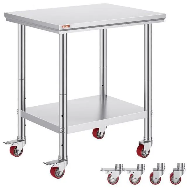 Under Shelf Load Capacity: 110 lbs / 50 kg,Under Shelf Dimension: 24.4 x 18.1 x 1.6 in / 61.9 x 45.9 x 4 cm,Item Dimension: 29.9 x 23.6 x 31.5 in / 76 x 60 x 80 cm,Material: Stainless Steel,Wheel Diameter: 3 in / 7.6 cm,Number of Wheels: 4,Upper Shelf Load Capacity: 176 lbs / 80 kg,Table Legs Thickness: 0.02 in / 0.06 cm,Upper Shelf Dimension: 29.9 x 23.6 x 2.2 in / 76 x 60 x 5.5 cm,Distance Between Two Shelves: 15.7-22 in / 40-56 cm,Item Weight: 28.7 lbs / 13 kg,Table Legs Diameter: 1.9 in / 4.8 cm