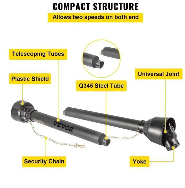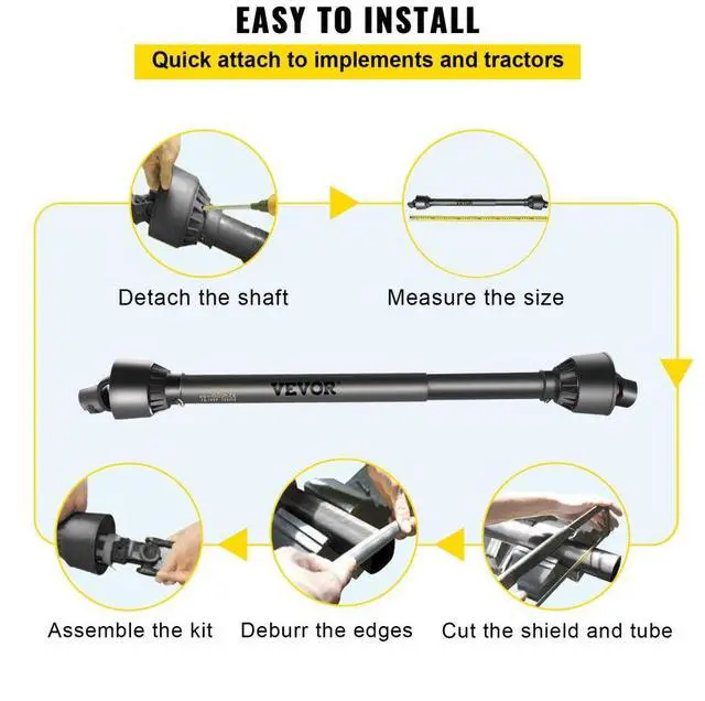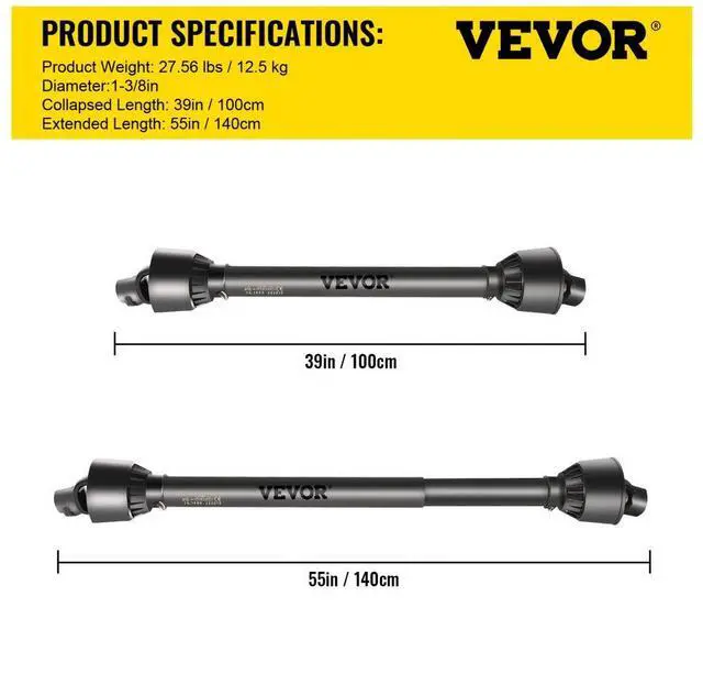VEVOR PTO Shaft PTO Driveshaft for Tractor 1-3/8" Spline/Round Ends 39-55" Black