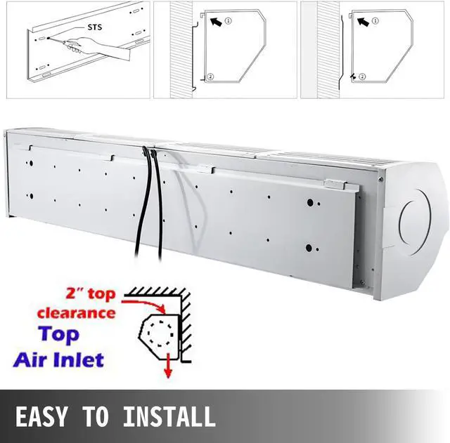 Energy-Saving Design The limit switch can be installed on the door. When the door is opened, the door fan automatically starts to work, and when the door is closed, it automatically closes. Easy To Install It comes with a mounting plate, which is already equipped with pre-drilled holes that meet the installation standards, making installation easier and more robust. (The air curtains with top air inlet requires at least 2" clearance from air curtain top to ceiling.