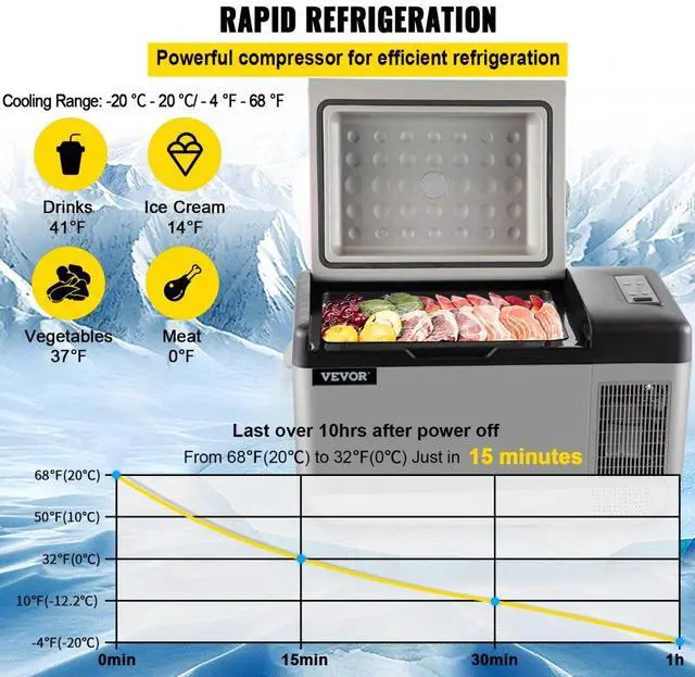 21qt Portable Car Fridge Freezer Cooler Mini Refrigerator 12v/24v Quick Cooling