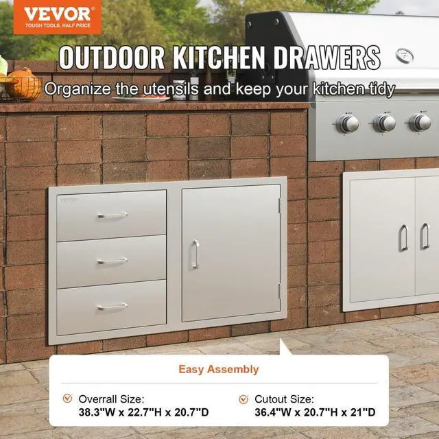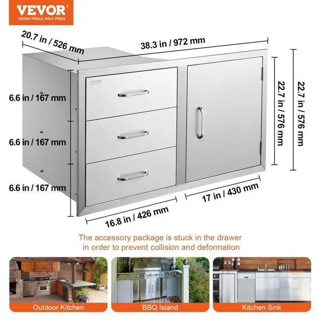 Bbq Door Triple Drawer Combo 38.1"w X 22.6"h Outdoor Kitchen Bbq Grill Storage