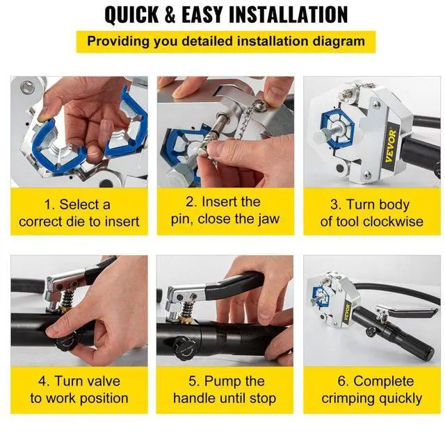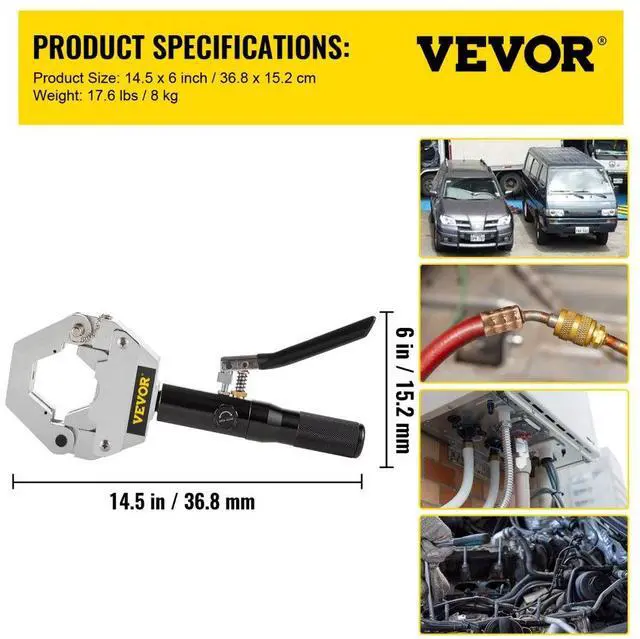 • Crimp Dies: #6, #8, #10, #12 & Reduced Barrier #8, #10, #12,Type: Hose Crimper Tool,Model: 71500,Material: Aluminum Alloy,Weight: 17.6LBS 8KG,Product Size: 18 x 15 x 9 in /46 x 38 x 23 cm
