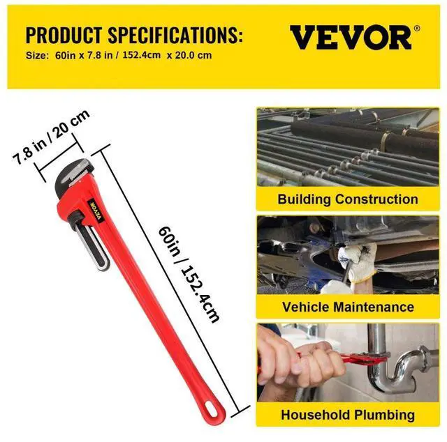 VEVOR 60" Cast Iron Straight Pipe Wrench Superior 60-inch Replaceable Simple To Handle