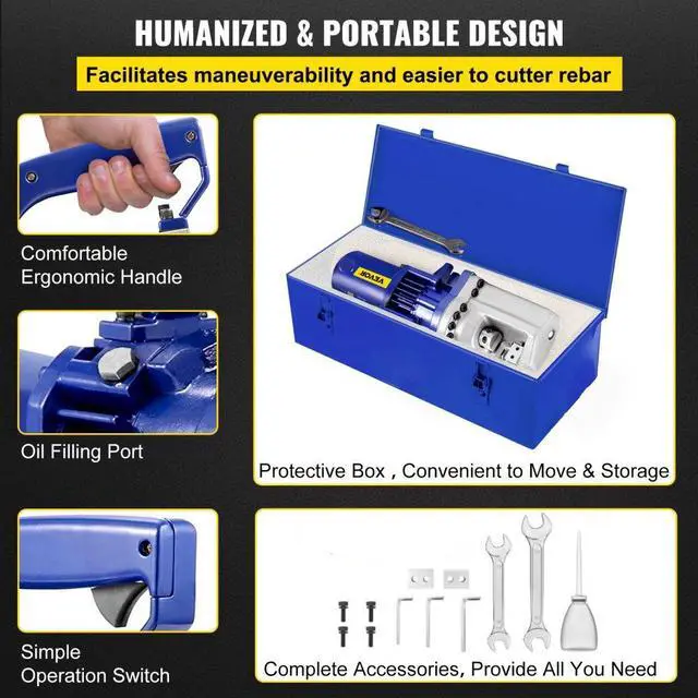 Min. Rebar Diameter: 3/20" / 4 mm #3,Storage Box Size(L x W x H): 22.24 x 9.06 x 9.65'' / 565 x 230 x 245 mm,Gross Weight: 70 lbs / 31.75 kg,Applications: Construction, Rescue,Max. Rebar Diameter: 1" / 25 mm #8 Grade 60,Cutting Speed: 3-5.5 Seconds,Certification: CE, RoHS,Machine Size(L x W x H): 18.9 x 5.91 x 10.04'' / 480 x 150 x 255 mm,Rebar Cutter Method: Hydraulic Driven Squeeze,Voltage: AC 110V,Hydraulic Oil Type: 46#,Model: RC-25,Frequency: 60Hz,Net Weight: 54 lbs / 24.49,Power: 1700W