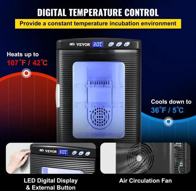 25l Black Reptile Egg Incubator 2-60c Scientific Hatcher Heating Led Display