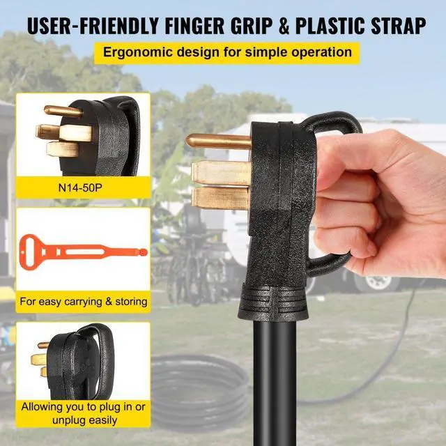 Temperature: -104F ~ 221F,Maximum Wattage: 12,500 Watts,Configuration: N14-50P/CS6364 Locking Connector,Length: 10 Feet,Rating: 50 Amps, 125/250 Volts,IP: IP44,Cord type: STW 6AWG/3C+8AWG/1C 100% copper
