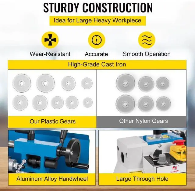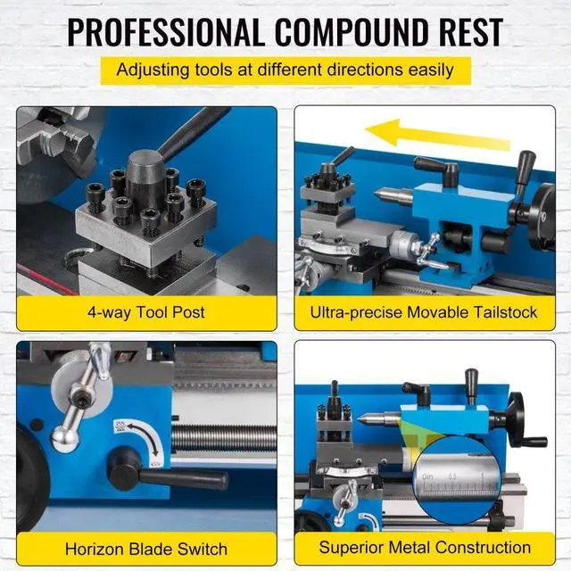 Mini Metal Lathe 550w 7"x14" Precision With Lamp Nylon Gears Infinitely Variable