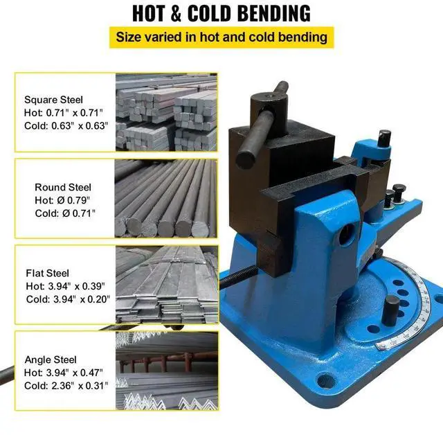 Square Steel: 0.6" x 0.6"(16x16 mm),COLD Bending Capacity:,HOT Bending Capacity:,Angle Steel: 2.4" x 0.3"(60x8 mm),Bending Angle: 0-120 Degree,Material: Steel,Round Steel: 0.7" (18 mm),Flat Steel: 4"x0.59" (100x15 mm)