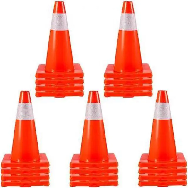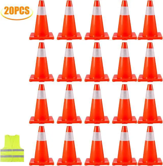 Traffic Safety Cones 20 PCS PVC Parking Cones 18" W/ 1 Reflective Collars 11" X 11" Red PVC Base For Higher Warning Roads Construction Sites