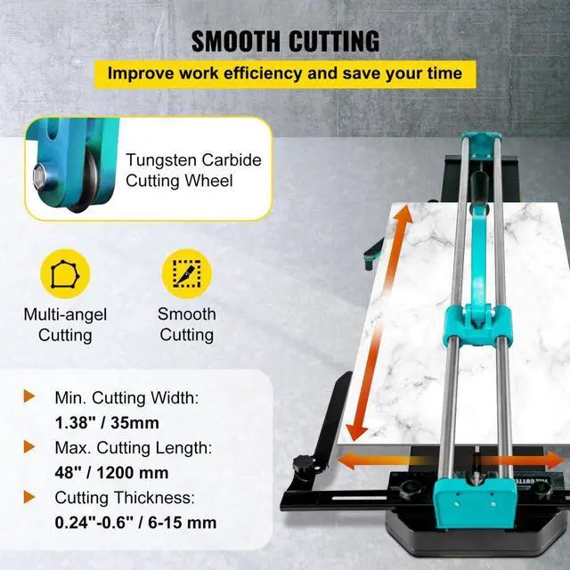 Item Name: Tile Cutter,Gross Weight27lbs / 12.2 kg:,Type: Heavy Duty Tile Cutter Manual,Gross Weight: 12 kg / 27lbs,Model48in:,Package Dimensions: 130 20 25 cm / 52 8 10 in,Max. Cutting Thickness:6-15 mm / 0.24-0.6 in,Material: Aluminum,Max. Cutting Length: 1200 mm / 48 in,Cutting Angle0-45 Degree:,Maximum Applicable Tile Side:48 in Length,Maximum Cuttable Tile Size:48 x 48 in