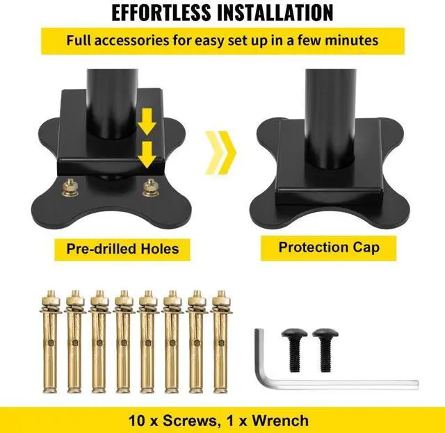 Steps: 1 to 4,Pre-Drilled Hole Diameter: 0.5"/13 mm,Color: Black,Base Thickness: 0.2"/5 mm,Material: Aluminum & Iron,Product Size (W x H): 47.6" x 35.8"/121 x 91 cm,Distance Between Vertical Bars: 31.5"/80 cm,Tube Thickness: 0.08"/2 mm,Load Capacity: 165 lbs/75 kg,Base Size (L x W): 5.3" x 5.3"/13.5 x 13.5 cm,Model: LZHS-4FT,Product Weight: 7.7 lbs/3.5 kg,Adjustable Angle: 0-45,Tube Diameter: 1.9"/4.8 cm