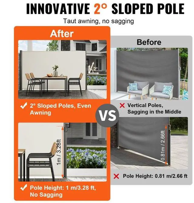 Retractable Side Awning Patio Screen Retractable Fence 71x118inch Privacy Screen