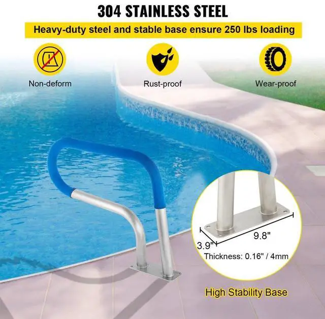 Vevor Pool Rail Pool Railing 30x22" Pool Handrail Stainless Steel W/ Grip Cover