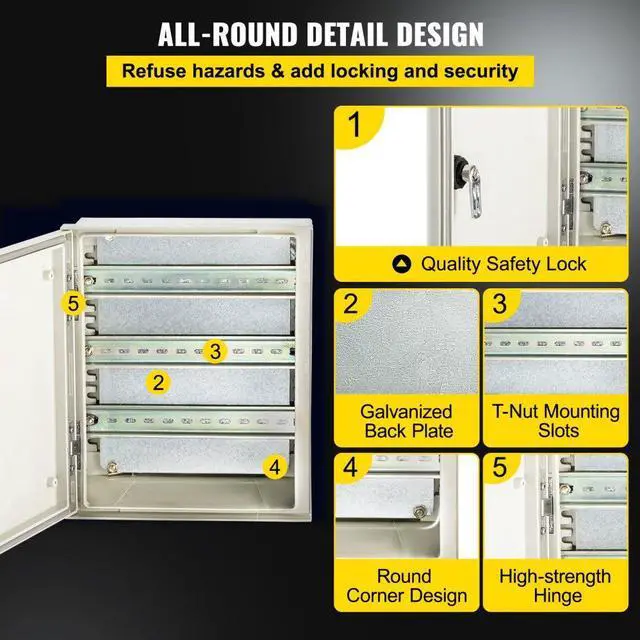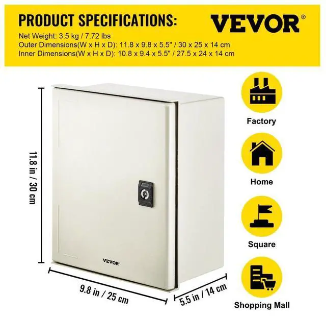 Mounting Plate: Galvanized Back Plate,IP Rating: IP65,Material: Fiberglass Reinforced Polyester,Mounting Type: Wall-Mount,Net Weight: 3.5 kg/7.72 lbs,Application: Indoor/Outdoor,Outer Dimensions(W x H x D): 11.8 x 9.8 x 5.5"/30 x 25 x 14 cm,Inner Dimensions(W x H x D): 10.8 x 9.4 x 5.5"/27.5 x 24 x 14 cm,NEMA Rating: NEMA Type 3, 3X