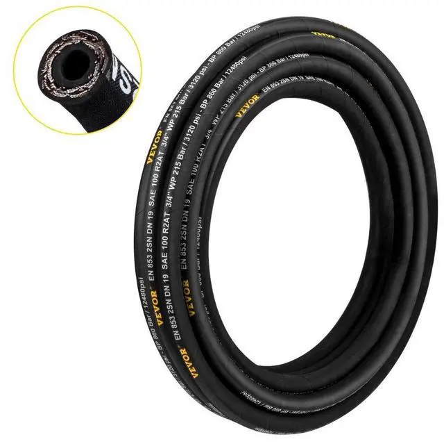 Vevor Hydraulic Hose,coiled Hydraulic Hose 50 Ft,3/4" 2 Steel Wire 3120 Psi