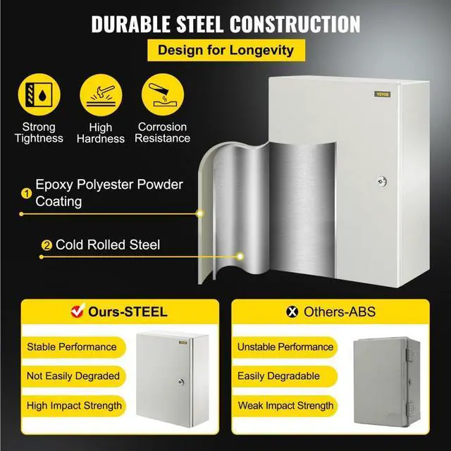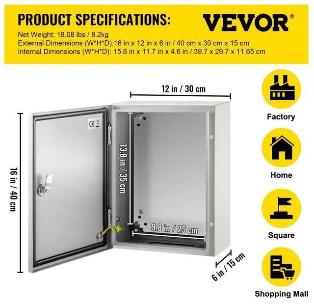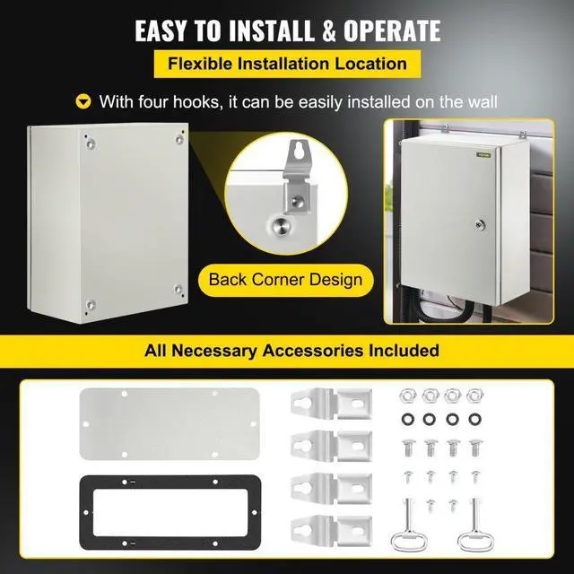 Vevor 16x12x6'' Carbon Steel Electrical Enclosure Wall Mount Junction Box Ip65
