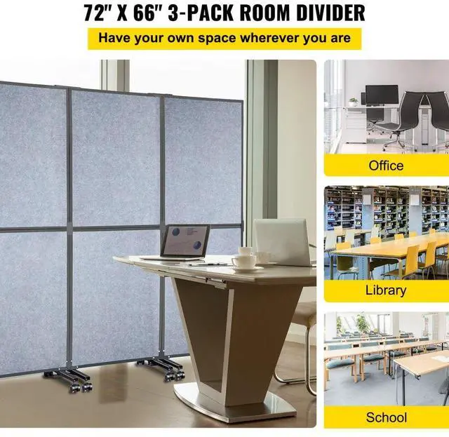 Vevor Acoustic Room Divider Office Partition Panel 72"x66" 3 Pack In Light Gray