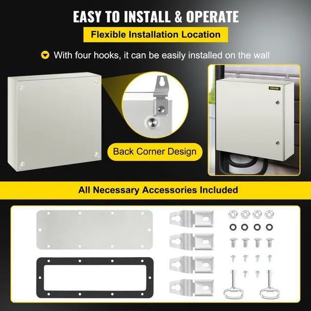Vevor Steel Electrical Box Electrical Enclosure Box 24x24x8'' Carbon Steel Ip65