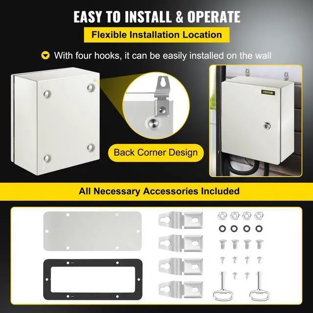 Vevor Steel Electrical Box Electrical Enclosure Box 12x10x6'' Carbon Steel Ip65