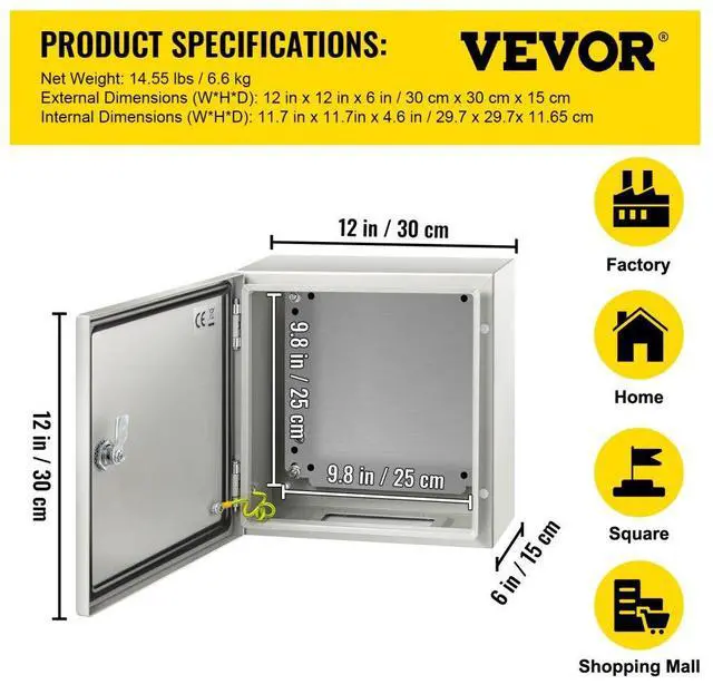 Vevor Steel Electrical Box Electrical Enclosure Box 12x12x6'' Carbon Steel Ip65