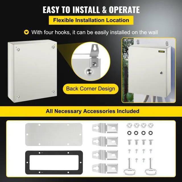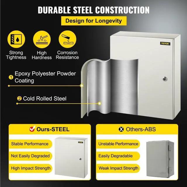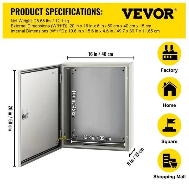 Vevor 20x16x6'' Carbon Steel Electrical Enclosure Ip65 Wall Mount Junction Box