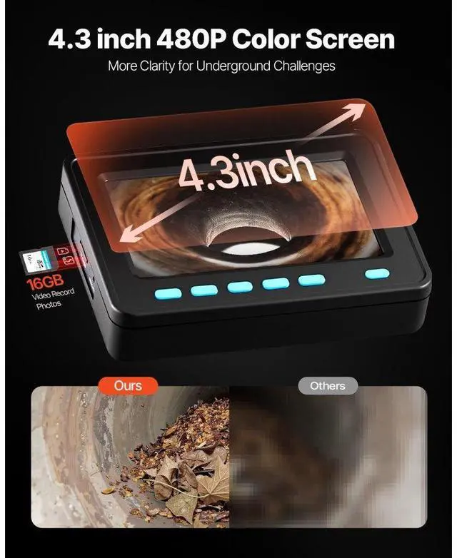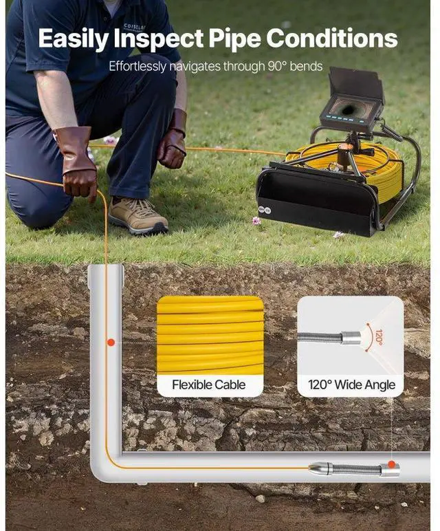 Vevor Sewer Camerapipe Inspection Camera 20m / 65.6ft Cable 4.3 In. Lcd Monitor
