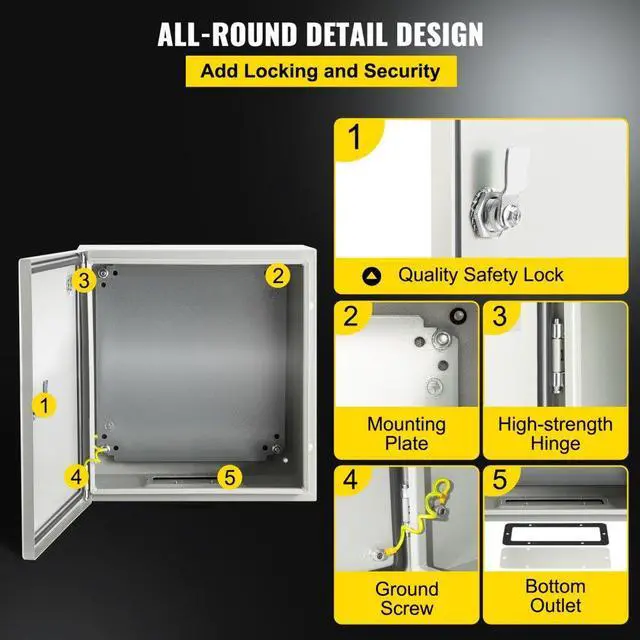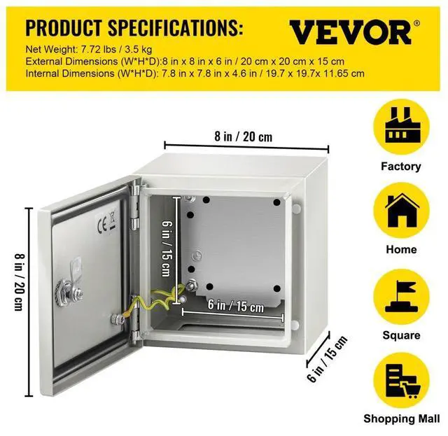 Vevor 8 X 8 X6'' Carbon Steel Electrical Enclosure Wall Mount Junction Box Ip65