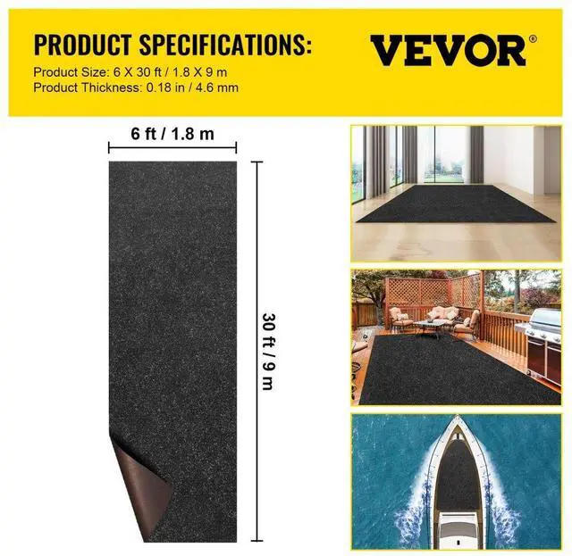 Vevor Bass Boat Carpet Cutpile Marine Carpet 6 X 30 Ft Charcoal Black In/outdoor