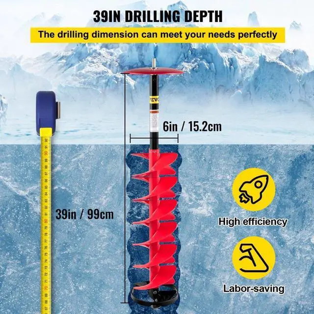 VEVOR Ice Drill Auger Nylon Ice Auger Bit 6''x39'' Drill Adapterice Fishing Red